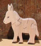 Puzzle composé de 4 pièces, en Frène, motif ane ou anon, 9 x 8 cm, ep 16 mm